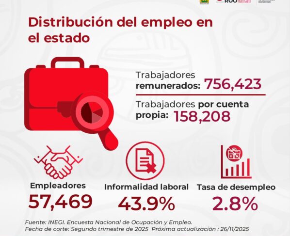 Chetumal, Quintana Roo, octubre de 2025. – Quintana Roo continúa consolidándose como uno de los estados con mayor dinamismo laboral del país, al registrar más de 750 mil trabajadoras y…