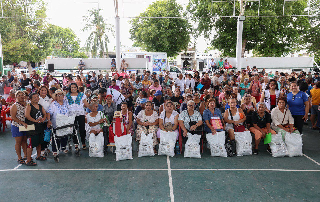 La cita fue en el domo de la colonia Zetina Gasca, donde Blanca Merari Tziu repartió 504 despensas gestionadas ante el gobierno de Quintana Roo para grupos vulnerables, como madres solteras, abuelitos, personas con discapacitad, mujeres embarazadas y lactantes.