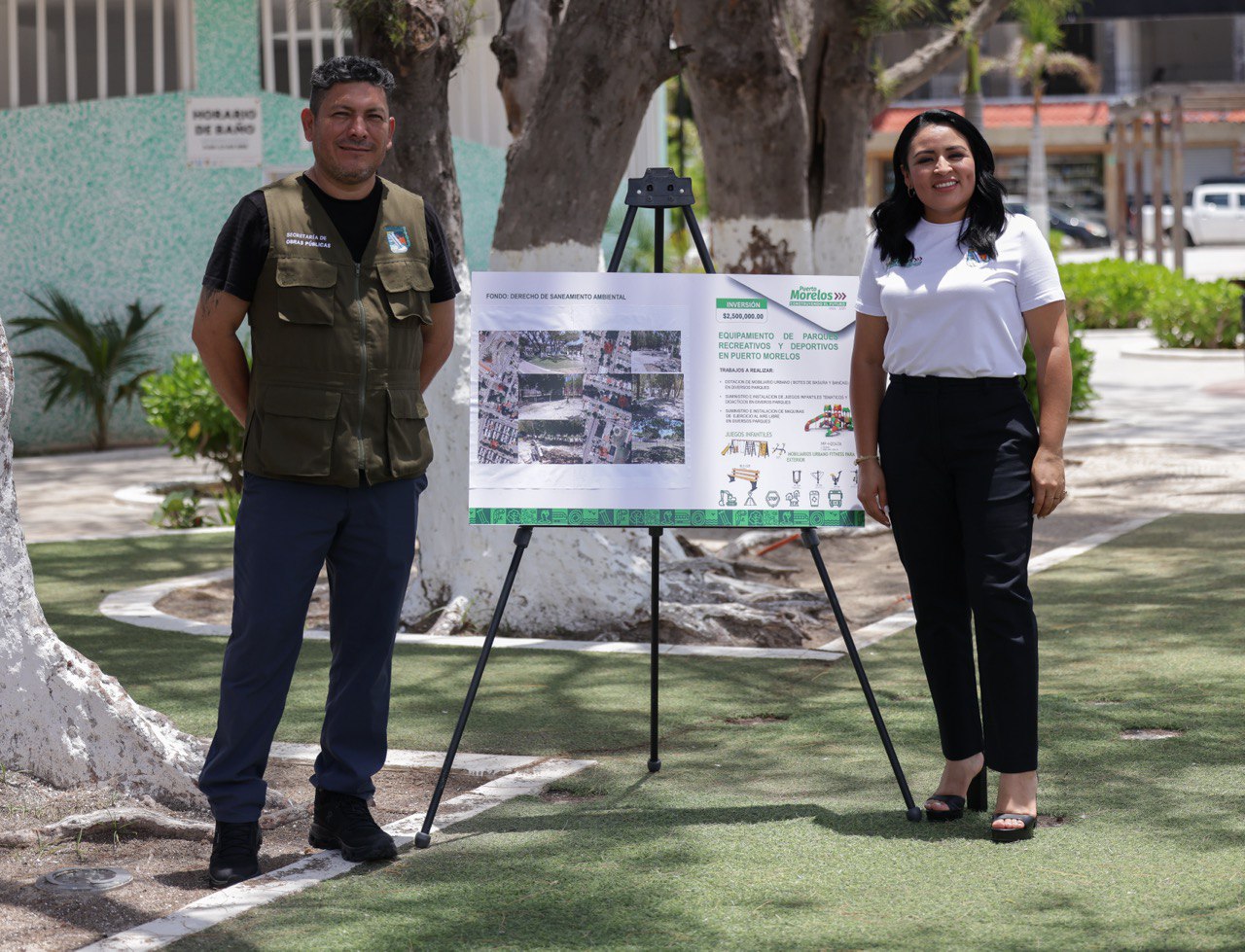 La Presidenta Municipal anunció el proyecto de Equipamiento de Parques Recreativos y Deportivos en Puerto Morelos, con una inversión de 2.5 millones de pesos.