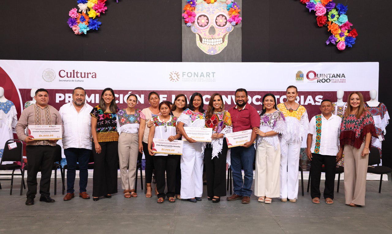 La gobernadora Mara Lezama de igual forma destacó el buen trabajo sobre madera de las y los artesanos de Puerto Morelos, así como las creaciones de artesanas y artesanos textiles de otros municipios también galardonados, al señalar que atrás de cada obra se encuentra una historia de vida.