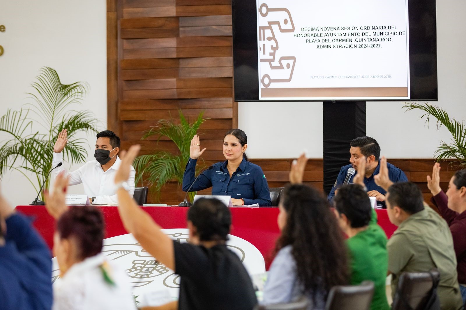 Playa del Carmen, Quintana Roo, 30 de junio de 2025.— En el marco de la Décima Novena Sesión Ordinaria del Honorable Ayuntamiento de Playa del Carmen, administración 2024–2027, encabezada por la presidenta municipal Estefanía Mercado, el Cabildo aprobó, por unanimidad, la iniciativa de decreto para declarar la fiesta patronal dedicada a la Virgen del Carmen como Patrimonio Cultural Intangible del Estado de Quintana Roo.