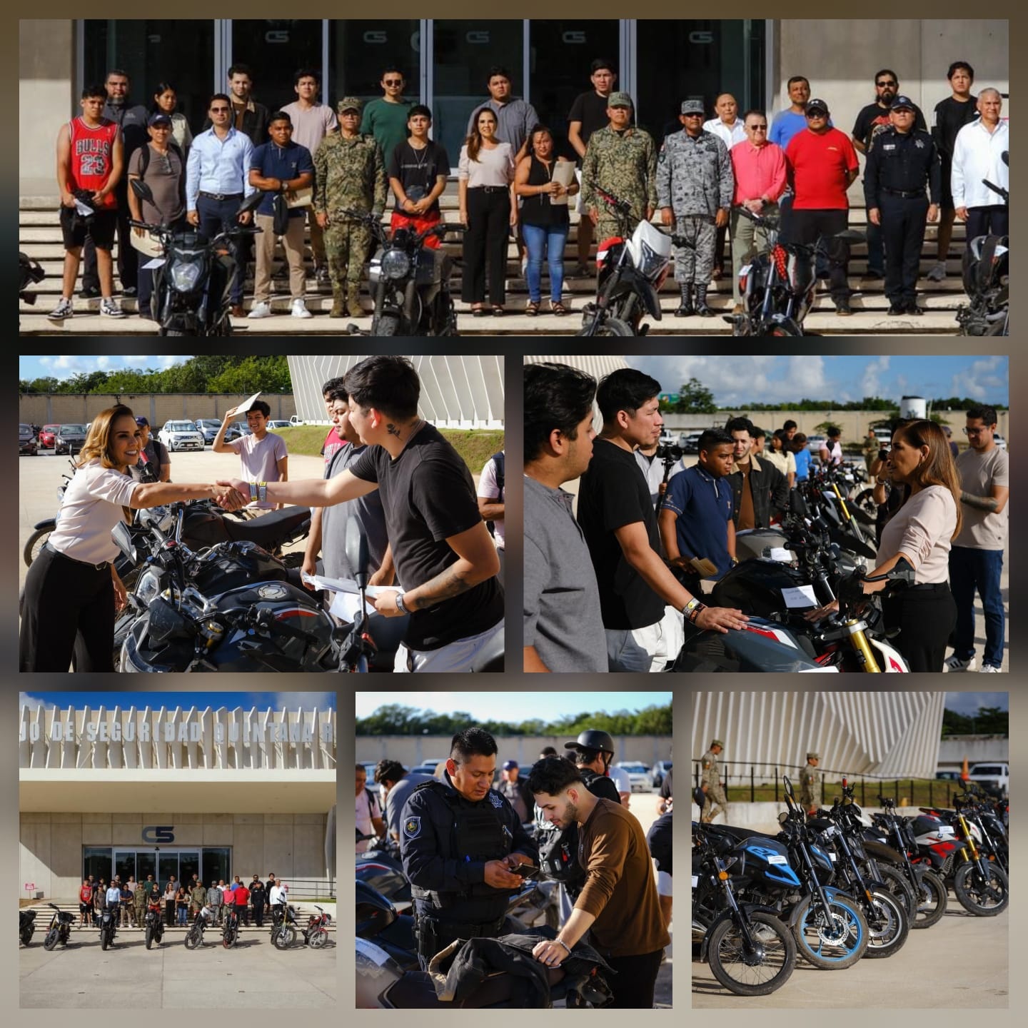 Cancún.— En un acto realizado en el Centro de Control, Comando, Cómputo y Comunicación (C5), la gobernadora de Quintana Roo, Mara Lezama Espinosa, encabezó la entrega de 16 motocicletas recuperadas tras diversas operaciones para combatir el robo de vehículos en la entidad.