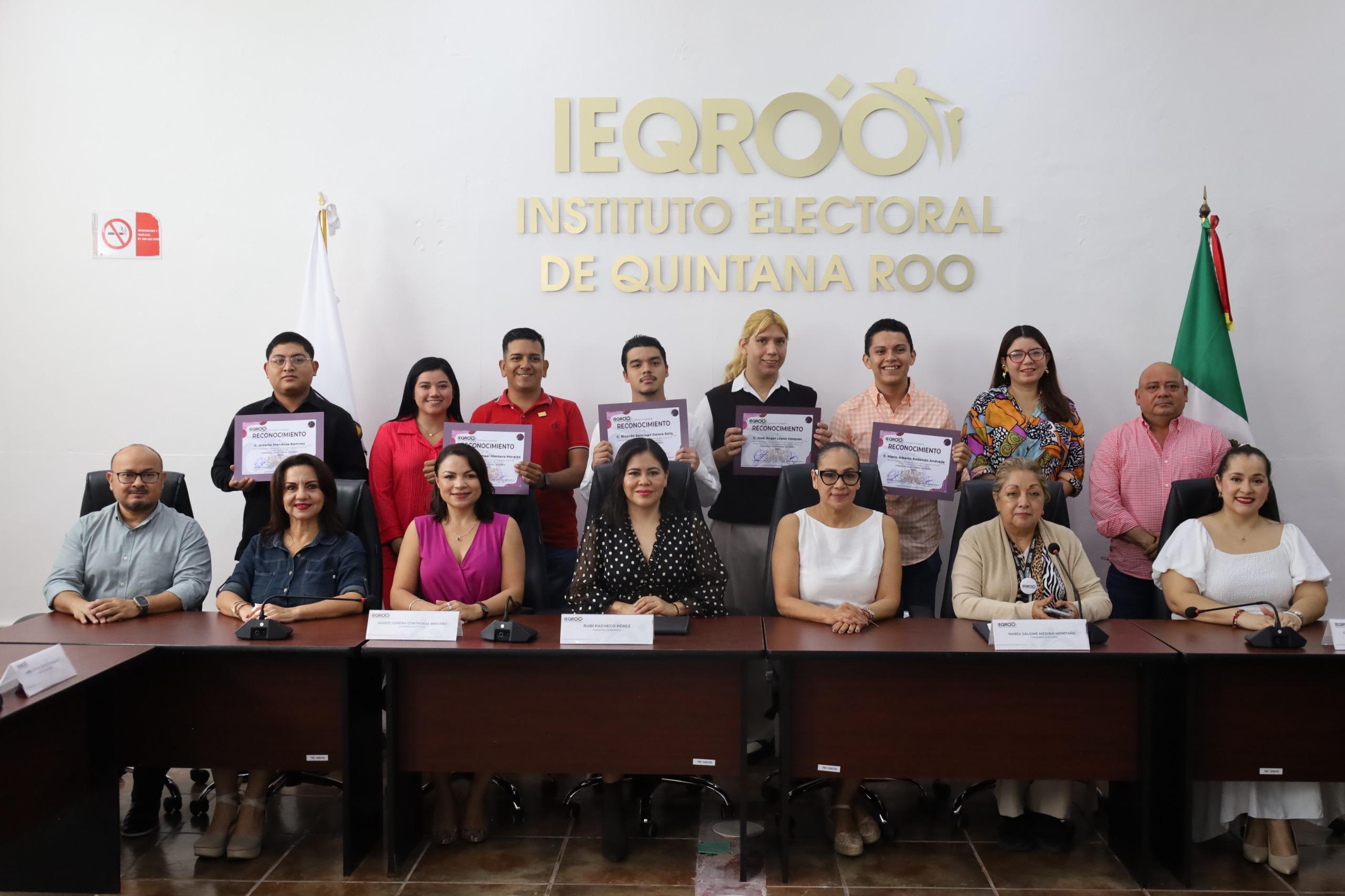Estuvieron presentes las consejerías del Instituto, Maisie Lorena Contreras Briceño, Patricia Cortés Pastrana, Nora Leticia Cerón González y Julio Asrael González Carrillo, así como la secretaria ejecutiva Guadalupe Irma Esquivel Monroy; al igual que la diputada Diana Frine Gutiérrez García, presidenta de la Comisión de Desarrollo con Igualdad de Oportunidades del Congreso del Estado; la titular del Instituto Quintanarroense de la Juventud, Alma Alvarado Moo, integrantes de la Junta General, familiares y amigos de las personas consejeras juveniles.