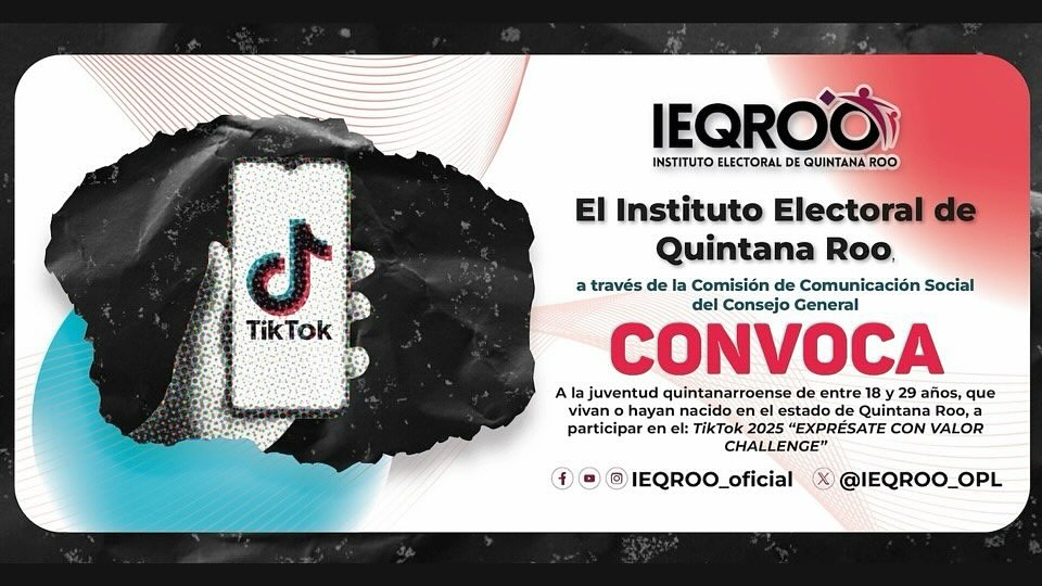 Quintana Roo, 2 de octubre de 2025 — Con el objetivo de promover los valores democráticos entre las juventudes y fomentar su participación activa en la vida pública, el Instituto Electoral de Quintana Roo (IEQROO) lanzó el #TikTokChallenge Exprésate con Valor, un concurso dirigido a jóvenes de entre 18 y 29 años.