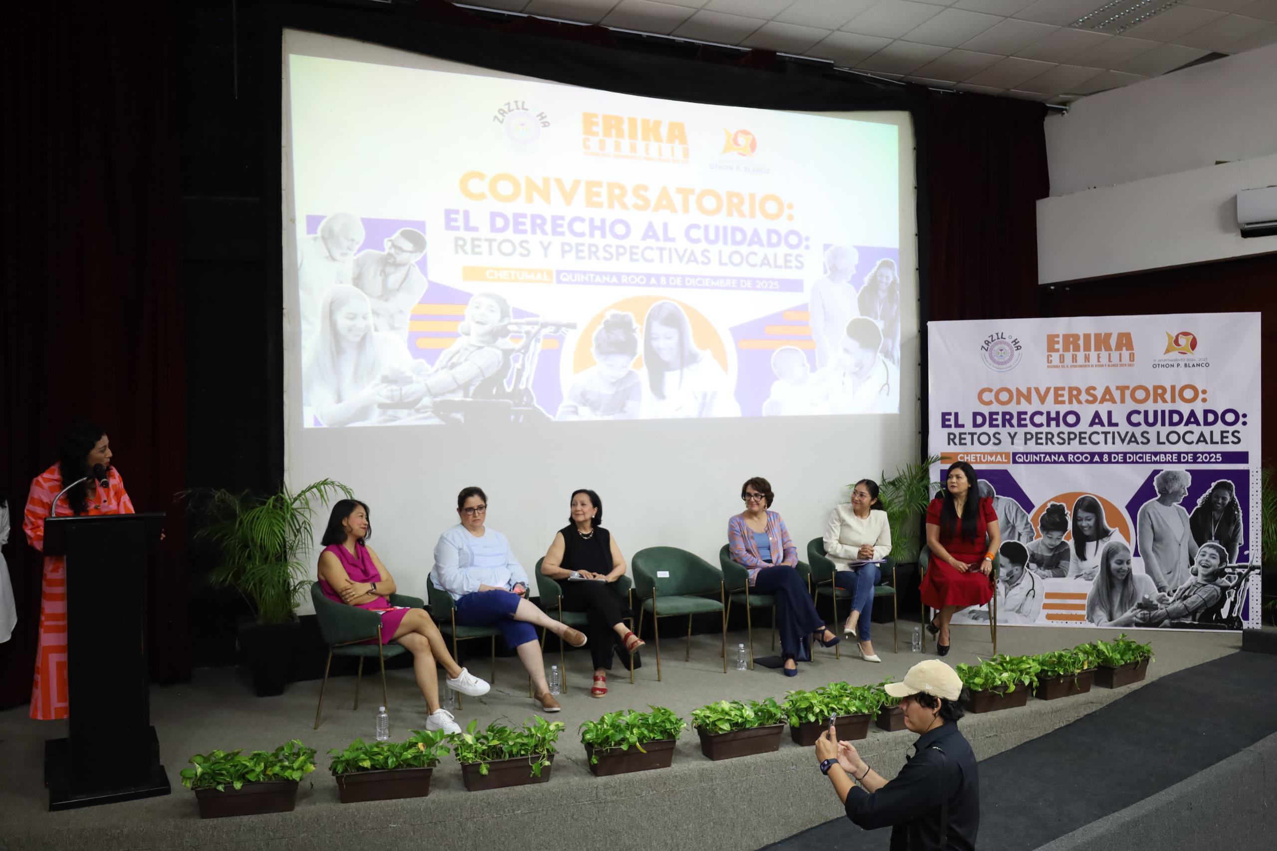 El encuentro reunió a especialistas de distintos ámbitos para abordar, desde diversas experiencias, los desafíos que enfrentan las instituciones en la garantía del derecho al cuidado. Entre las panelistas destacaron Amalia García Medina, senadora de la República; Patricia Mercado, diputada federal; Martha Tagle Martínez, activista y consultora en temas de género; Lidia Rojas Fabro, presidenta de la Comisión Anticorrupción y Participación Ciudadana del Ayuntamiento de Othón P. Blanco; Agueda Carolina Gon Martínez, del colectivo Camino hacia el Desarrollo Sostenible; y Yunitzilim Rodríguez Peraza, profesora investigadora de la Universidad Autónoma de Quintana Roo.