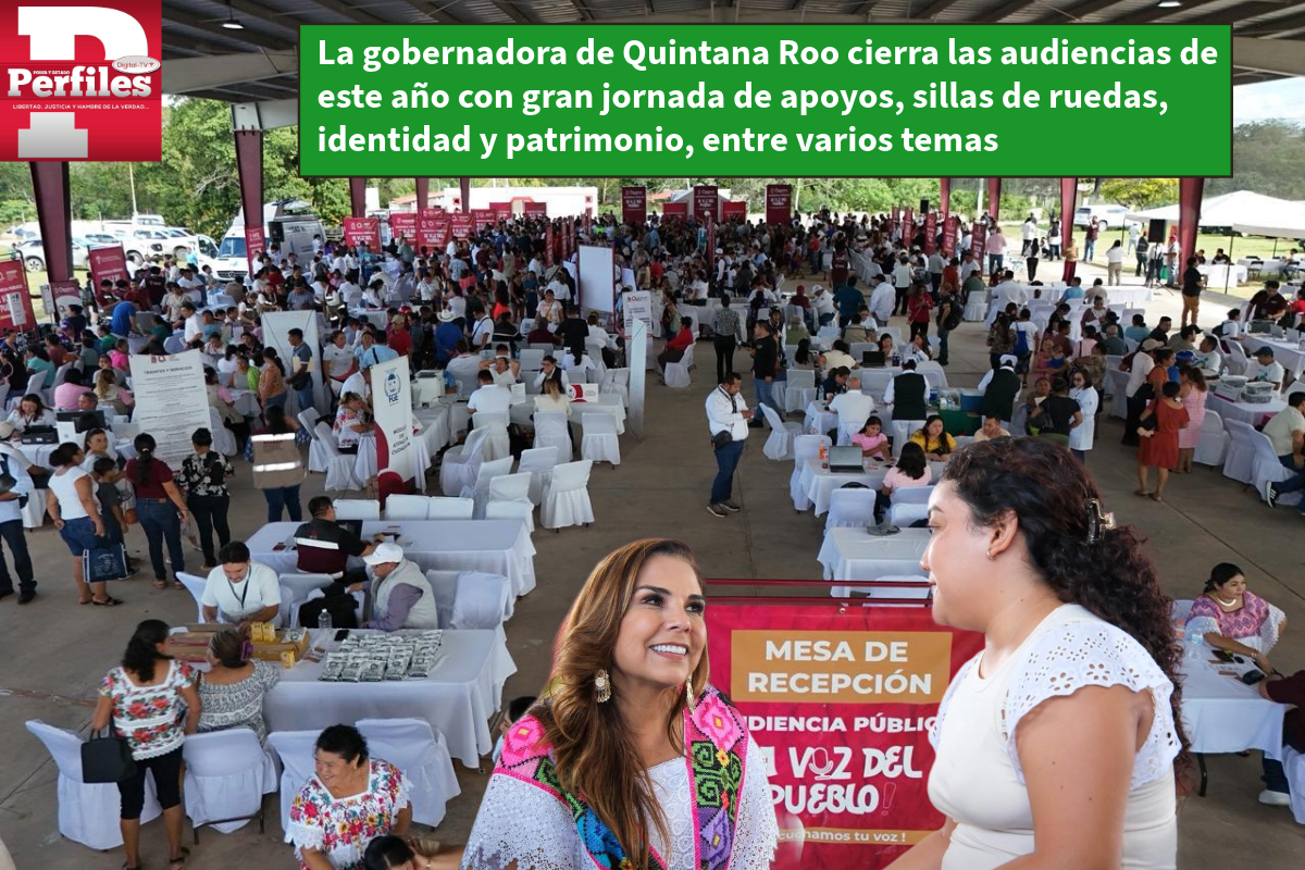 La gobernadora de Quintana Roo cierra las audiencias de este año con gran jornada de apoyos, sillas de ruedas, identidad y patrimonio, entre varios temas