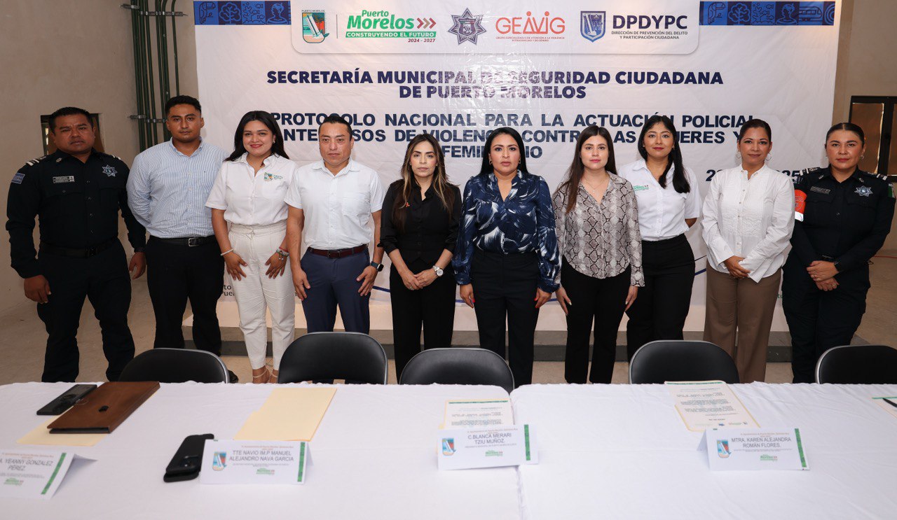 Puerto Morelos, Quintana Roo, 23 de junio de 2025.— Al poner en marcha el Curso-Taller relativo al Protocolo Nacional para la Actuación Policial ante Casos de Violencia contra las Mujeres y Feminicidio y el Protocolo Nacional de Coordinación Interinstitucional para Protección de Niñas, Niños y Adolescentes Víctimas de Violencia, la presidenta municipal Blanca Merari Tziu Muñoz aseguró que reforzar la capacitación de funcionarias y funcionarios en esos rubros es un compromiso firme de su administración.