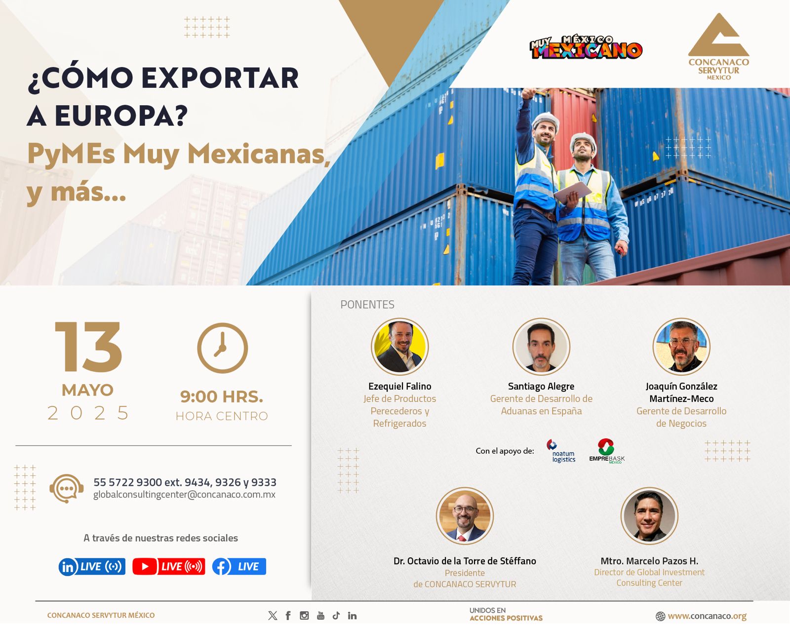 Ciudad de México – Quintana Roo — En un esfuerzo conjunto por fortalecer el crecimiento y la proyección global de las pequeñas y medianas empresas mexicanas, la Secretaría de Desarrollo Económico de Quintana Roo (SEDE) y la Confederación de Cámaras de Comercio, Servicios y Turismo (CONCANACO SERVYTUR) han lanzado una invitación abierta al evento virtual “¿Cómo exportar a Europa? PyMEs Muy Mexicanas, y más…”, que se celebrará el próximo 13 de mayo de 2025.