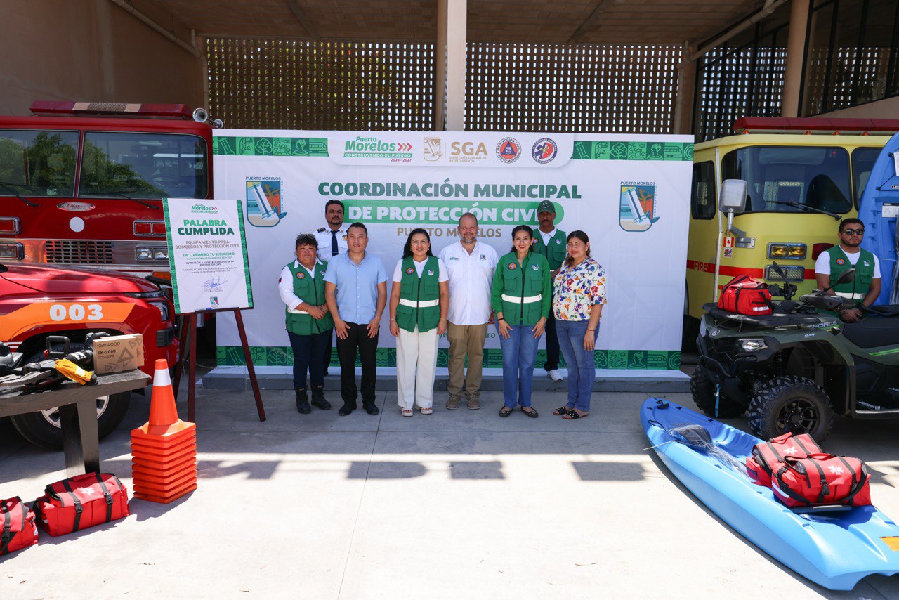 Puerto Morelos, Quintana Roo, 22 de agosto de 2025. – La presidenta municipal Blanca Merari Tziu Muñoz reafirmó su compromiso con la seguridad y el bienestar de la comunidad portomorelense al fortalecer a la Coordinación Municipal de Protección Civil y Bomberos con nuevas unidades y equipamiento especializado, en el marco del Día Nacional del Bombero.