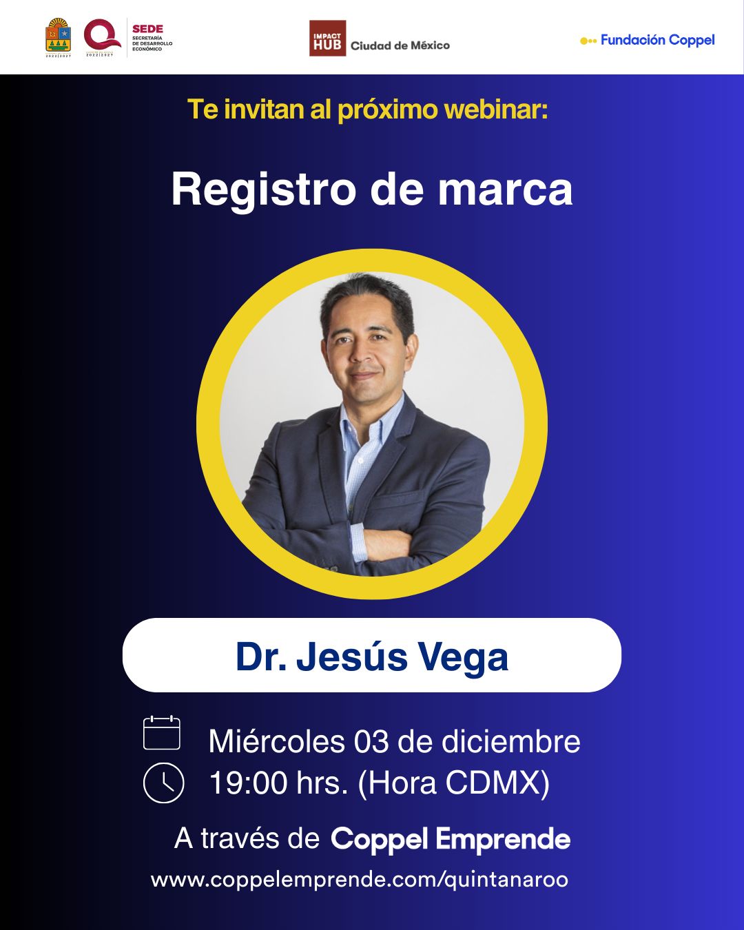 La sesión será impartida por el Dr. Jesús Vega y se llevará a cabo a las 19:00 horas (CDMX). Durante el taller virtual, los participantes aprenderán la importancia de registrar su marca como una herramienta clave para proteger su negocio y recibirán orientación práctica sobre los pasos a seguir para formalizar este proceso.