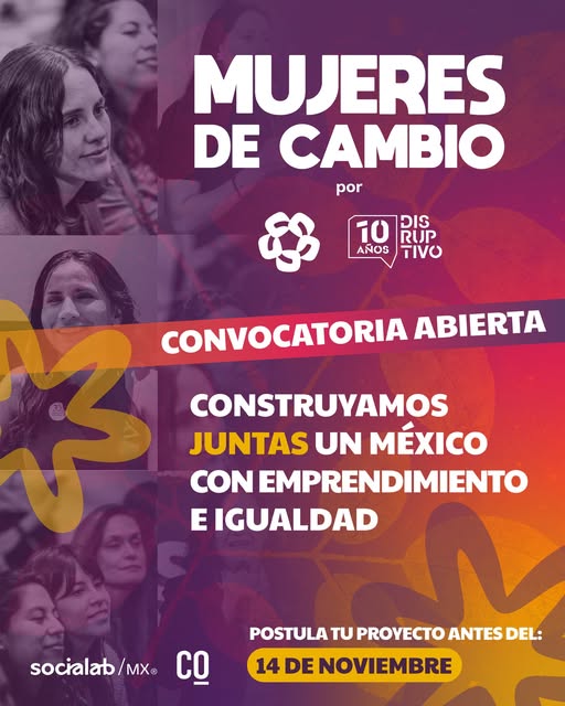 Las interesadas en participar pueden registrar su proyecto hasta el 14 de noviembre en la plataforma de Socialab, a través del sitio: https://comunidad.socialab.com/…/mujeresdecambio2025.
