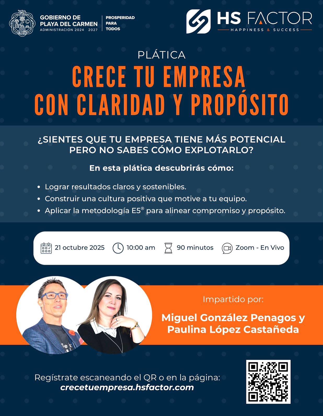 La Secretaría de Desarrollo Económico y de Atracción de Inversiones (SEDE) de Quintana Roo anunció la realización de la charla digital “Crece tu empresa con claridad y propósito”, un espacio diseñado para impulsar el crecimiento sostenible de las empresas locales mediante herramientas de gestión y liderazgo moderno.