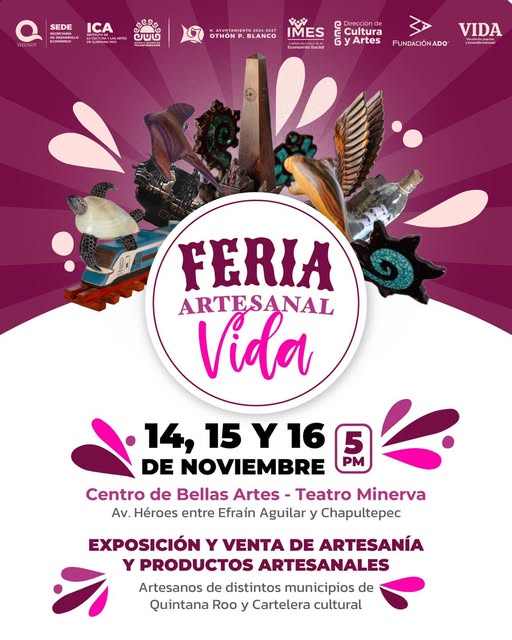 Con el objetivo de impulsar el talento local y preservar las tradiciones del estado, este 14, 15 y 16 de noviembre se llevará a cabo la Feria Artesanal “Vida” en el Centro de Bellas Artes – Teatro Minerva, ubicado en la Avenida Héroes, entre Efraín Aguilar y Chapultepec, en Chetumal.