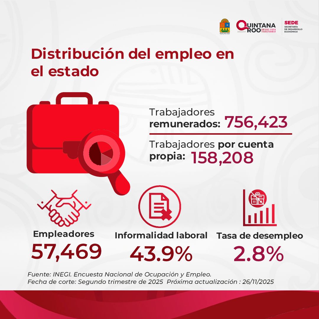 Estas cifras muestran la diversidad del mercado laboral quintanarroense, donde convergen actividades del sector turístico, comercial, industrial y de servicios, así como nuevas oportunidades para el desarrollo de proyectos independientes.