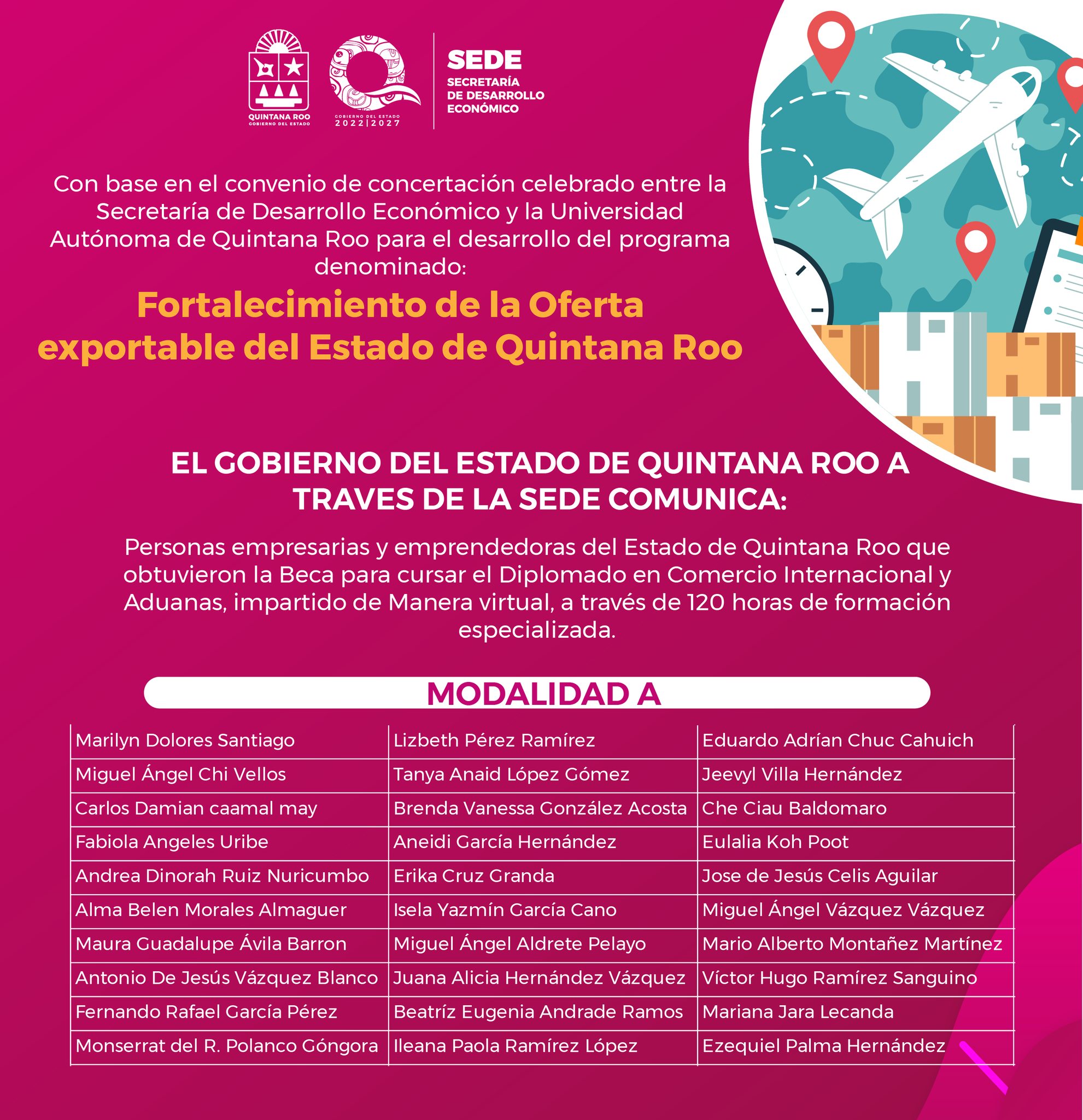 Esta iniciativa busca que las y los quintanarroenses adquieran conocimientos prácticos y estratégicos sobre exportación, normatividad aduanera, logística y mercados internacionales, facilitando que sus productos puedan llegar a mercados extranjeros con competitividad y eficiencia.