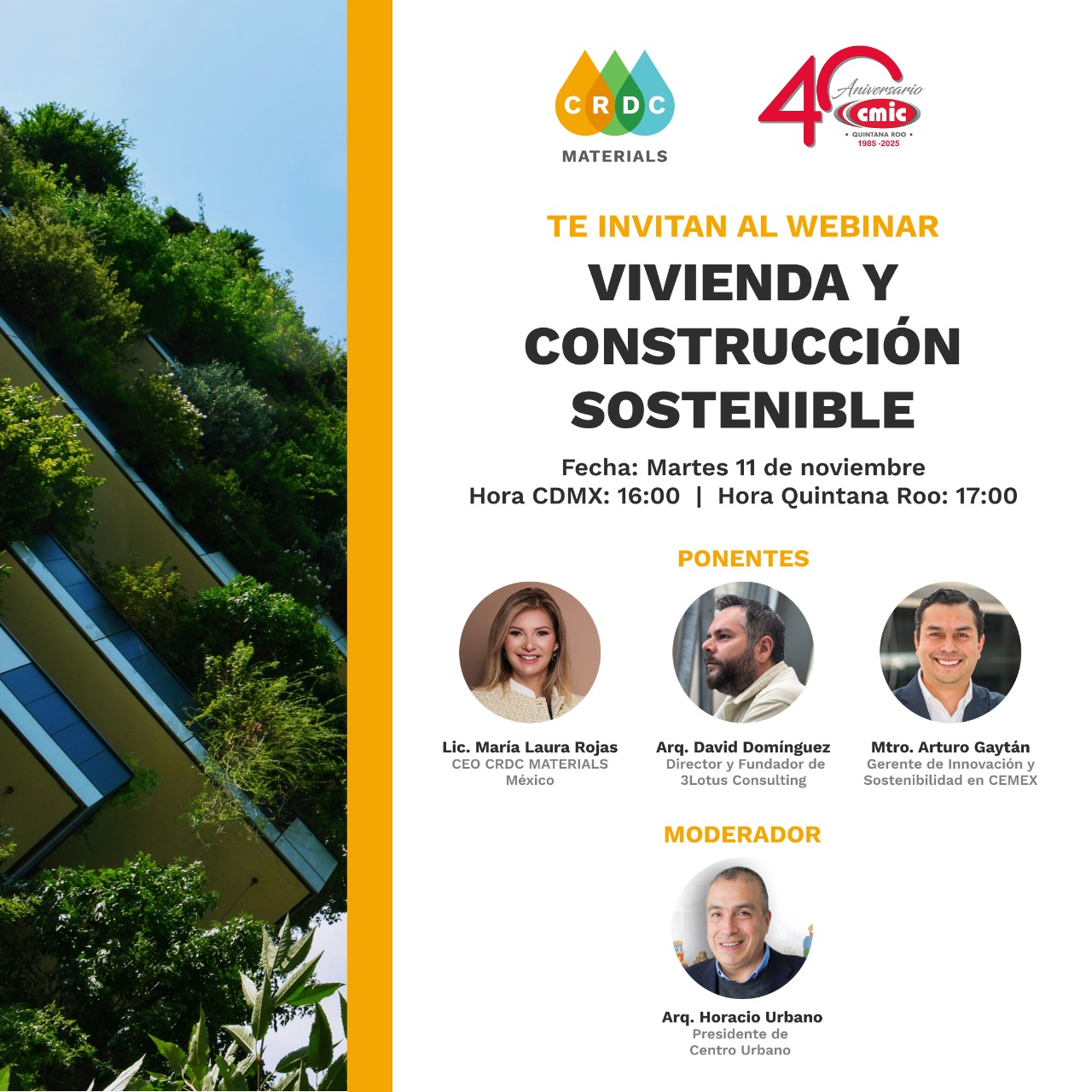 La Secretaría de Desarrollo Económico de Quintana Roo (SEDE), en colaboración con CRDC Materials y la Cámara Mexicana de la Industria de la Construcción (CMIC) delegación Quintana Roo, anunció la realización del webinar “Vivienda y Construcción Sostenible”, que se llevará a cabo este martes 11 de noviembre a las 5:00 p.m. (hora local) —4:00 p.m. en la Ciudad de México—.