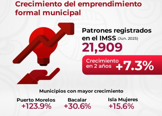 Quintana Roo, 15 de julio de 2025. El impulso a políticas públicas orientadas al fortalecimiento de la economía formal ha permitido que Quintana Roo registre un crecimiento sostenido en el número de patrones inscritos ante el Instituto Mexicano del Seguro Social (IMSS), alcanzando un total de 21,909 empleadores al cierre…