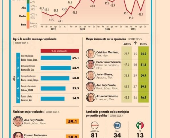 Cancún, Q. Roo. — La presidenta municipal de Benito Juárez, Cancún, Ana Paty Peralta, se consolidó como la alcaldesa mejor evaluada de México, de acuerdo con la encuesta Mitofsky correspondiente…