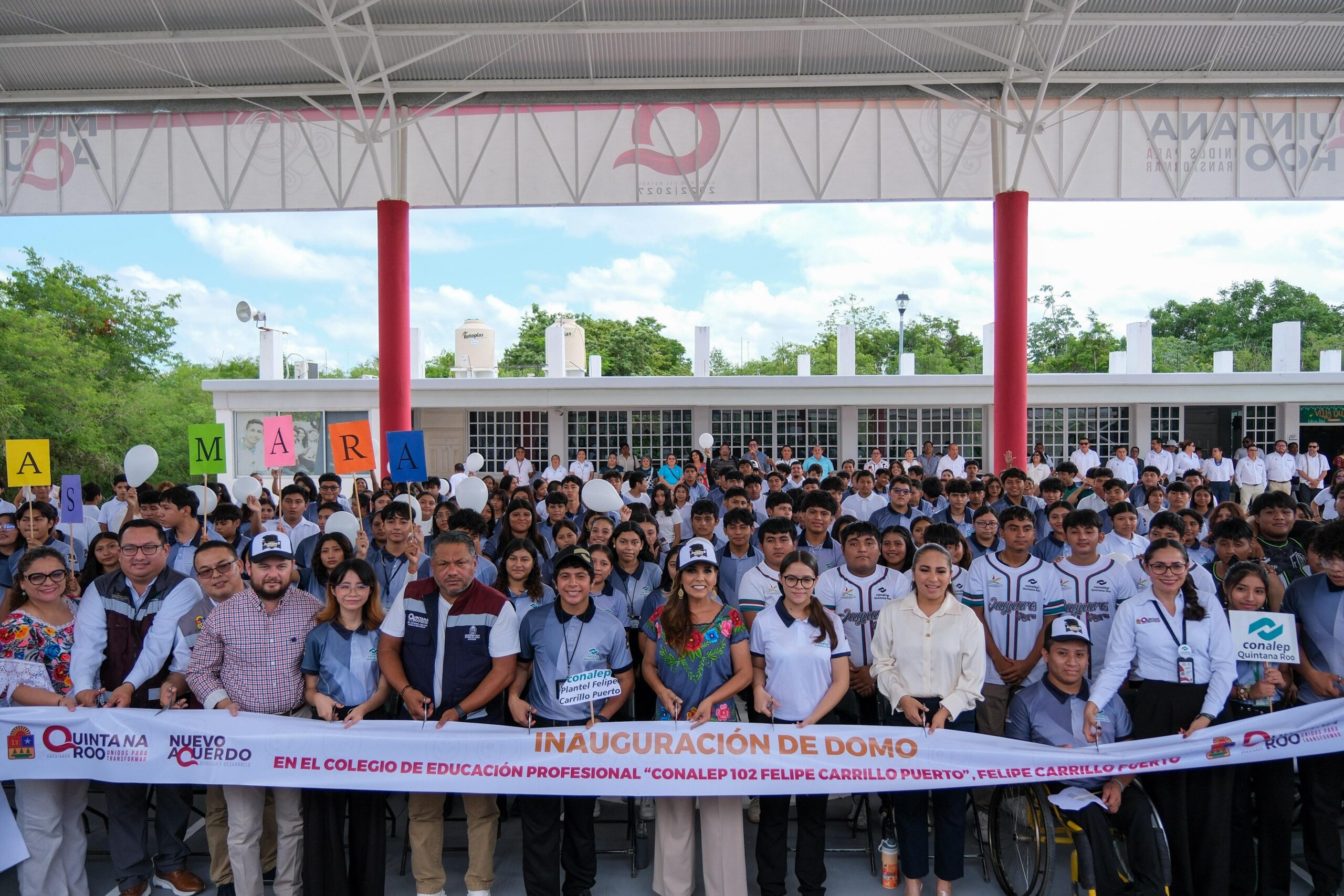 Más de 550 estudiantes del Conalep 102 “Felipe Carrillo Puerto” cuentan ya con un nuevo domo que transformará su vida escolar. La obra fue inaugurada este jueves por la gobernadora de Quintana Roo, Mara Lezama Espinosa, en un acto cargado de simbolismo y participación estudiantil, donde se destacó la respuesta directa del gobierno estatal a una petición hecha por las y los jóvenes.