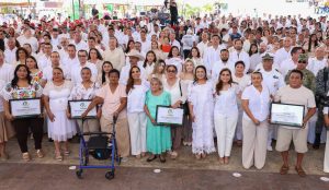 También se entregaron reconocimientos a 10 portomorelenses distinguidos: María Florentina Sulub Canul, Luciano García B., Ángela Azcorra Sánchez, José Perfecto Virgilio Gómez, Vilma Esquivel Pérez, Bolivia del Rosario Cámara Escudero y, de manera póstuma, a María del Carmen Hau Canul, José Sebastián Canul Collí, Elsy Delfina González Evia, José Luis Vivas Vázquez y José de Jesús Espinosa Beas.