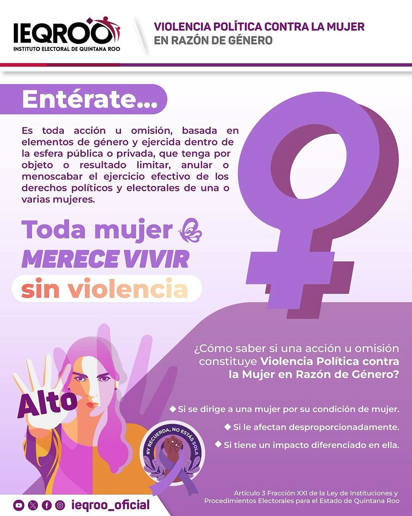 Con campañas permanentes de información y prevención, el IEQROO reafirma su compromiso de construir un entorno político más inclusivo, equitativo y respetuoso de los derechos humanos, donde todas las voces —especialmente las de las mujeres— sean escuchadas y respetadas.