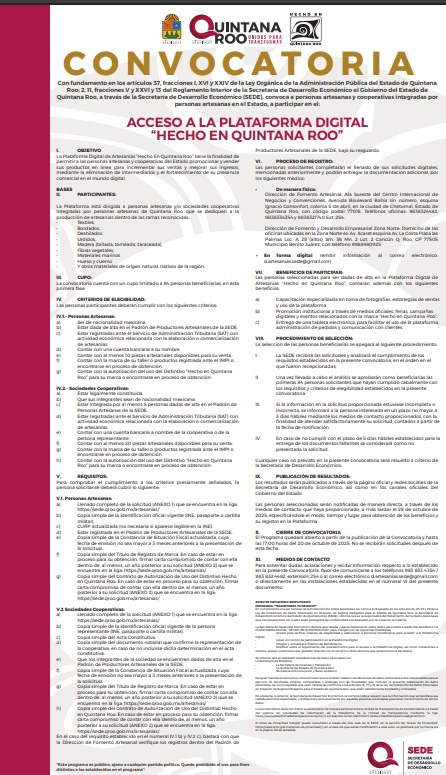La plataforma estará disponible en el sitio web oficial sede.qroo.gob.mx/artesanias, donde los y las interesadas podrán registrarse gratuitamente para acceder a una serie de beneficios: