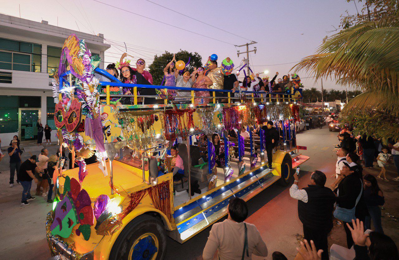 En el desfile participaron 24 carros alegóricos, tanto de concursantes como de dependencias municipales, y del club de autos que destacaron por sus temáticas marinas y mayas, envolviendo a las familias en un ambiente de tradición y alegría.