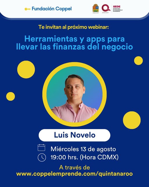 Chetumal, Q. Roo – Con el objetivo de fortalecer las capacidades financieras de emprendedores y pequeños empresarios, Coppel Emprende llevará a cabo el próximo miércoles 13 de agosto a las 19:00 horas (tiempo del centro de México) un webinar titulado “Herramientas y apps para llevar las finanzas del negocio”.