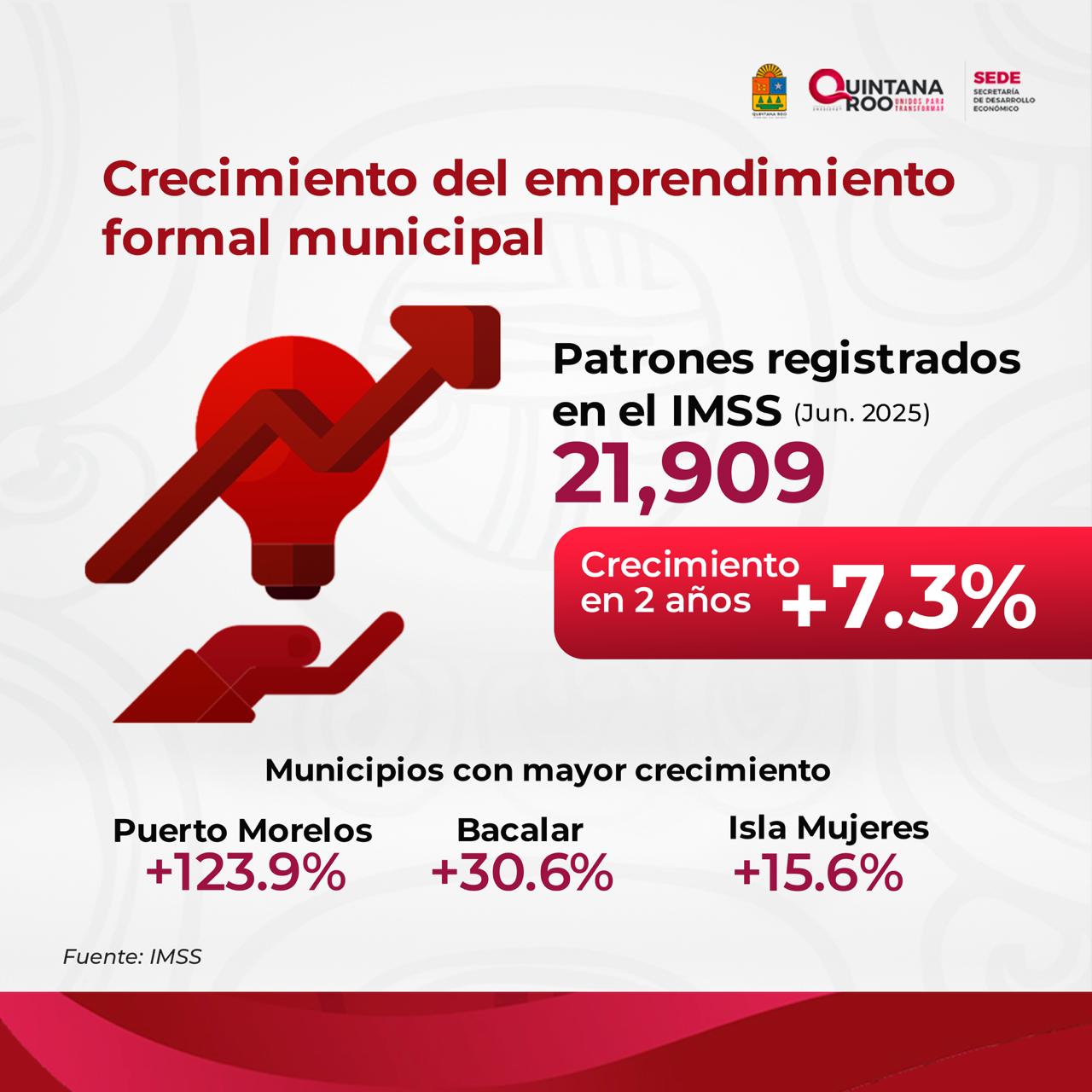 Quintana Roo, 15 de julio de 2025. El impulso a políticas públicas orientadas al fortalecimiento de la economía formal ha permitido que Quintana Roo registre un crecimiento sostenido en el número de patrones inscritos ante el Instituto Mexicano del Seguro Social (IMSS), alcanzando un total de 21,909 empleadores al cierre de junio de 2025.