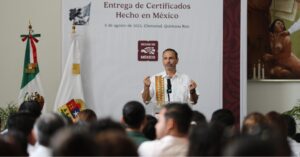 La gobernadora Mara Lezama, junto al secretario de Economía Marcelo Ebrard y el Secretario de Desarrollo Económico Paul Carrillo, entregaron 14 certificados “Hecho en México” a empresas com el Distintivo Hecho en Quintana Roo, mismas que destacan por su calidad, identidad y capacidad exportadora.