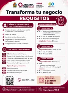 Con el objetivo de impulsar el crecimiento y modernización de las micro, pequeñas y medianas empresas en el estado, continúa abierta la convocatoria del programa “Transforma Tu Negocio 2026”, una iniciativa enfocada en fortalecer la competitividad del sector empresarial de Quintana Roo.