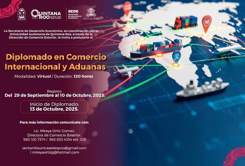 En un contexto donde la economía global exige profesionales cada vez más preparados, la Secretaría de Desarrollo Económico de Quintana Roo (SEDE) ha anunciado el lanzamiento de un nuevo Diplomado en Comercio Internacional y Aduanas, en coordinación con la Universidad Autónoma del Estado de Quintana Roo (UQROO).