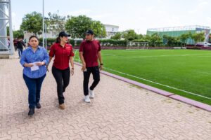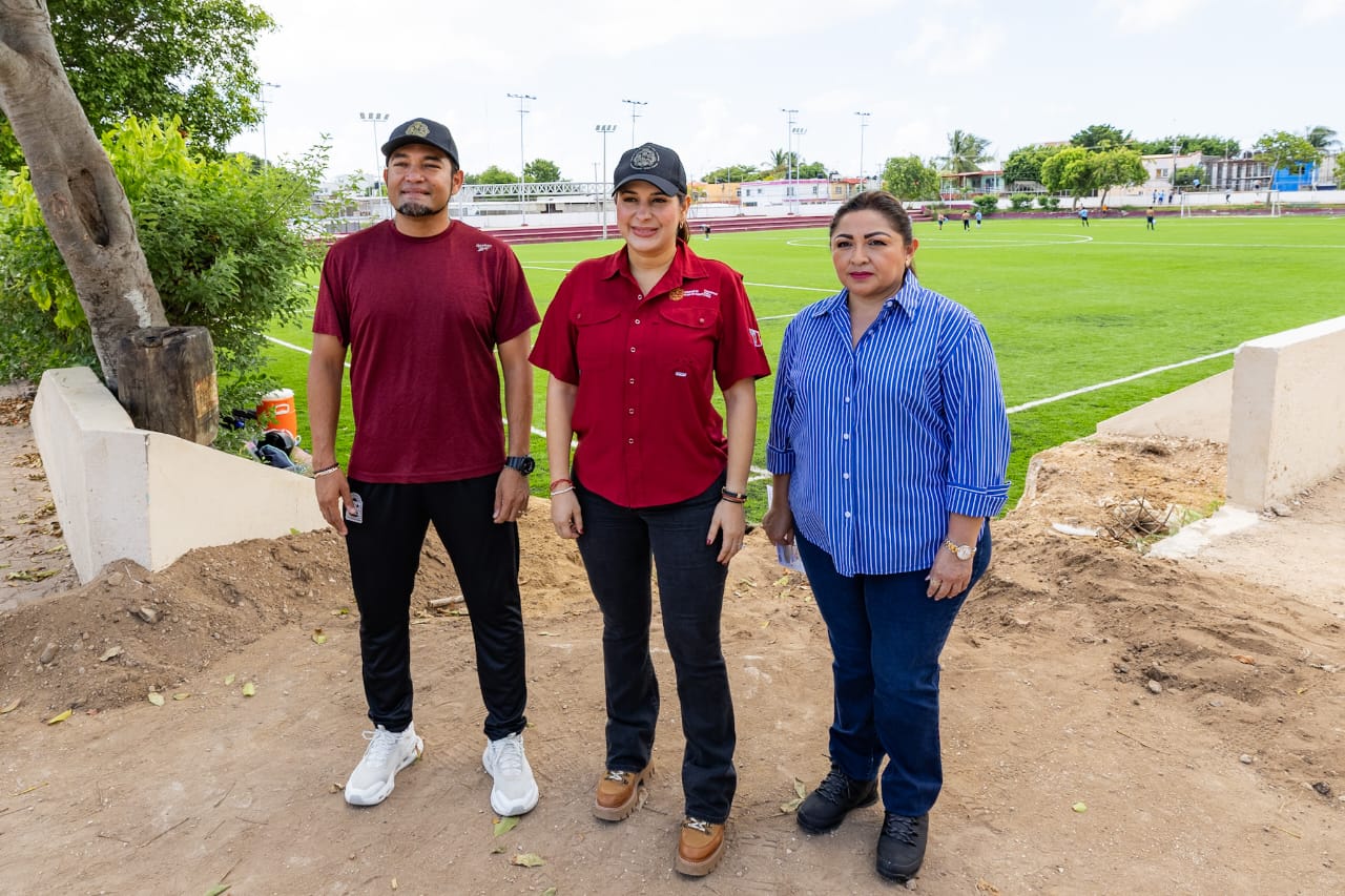 Playa del Carmen, Quintana Roo, 12 de agosto de 2025.— Donde antes había abandono, hoy hay esperanza. Gracias a una inversión histórica del Gobierno Municipal que encabeza Estefanía Mercado, la cancha de futbol soccer de la Unidad Deportiva Playa del Carmen, en donde se ubica en el emblemático Poliforum, cuenta, por primera vez en su historia, con pasto sintético, marcando un antes y un después para el deporte en la ciudad.
